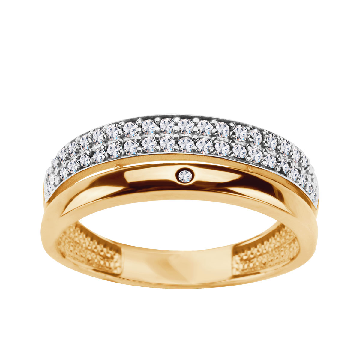 Pierścionek z dwukolorowego złota z cyrkoniami
